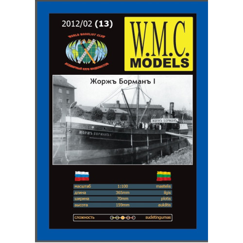История этого судна практически не известна. Судно построено в 1912 году в Финляндии по заказу кондитерского товарищества «Жоржъ Борманъ и Ко» и часто делало рейсы из Санкт – Петербурга в Мемель (Клайпеду) , перевозя кондитерскую продукцию и различные грузы. Это был сухогруз с двумя трюмами, в нем стояла 200 – сильная паровая машина. Не сложная, пестрая и симпатичная модель небольшого парохода, с которой справится даже моделист с небольшим опытом, но рядом должен быть более опытный коллега.
